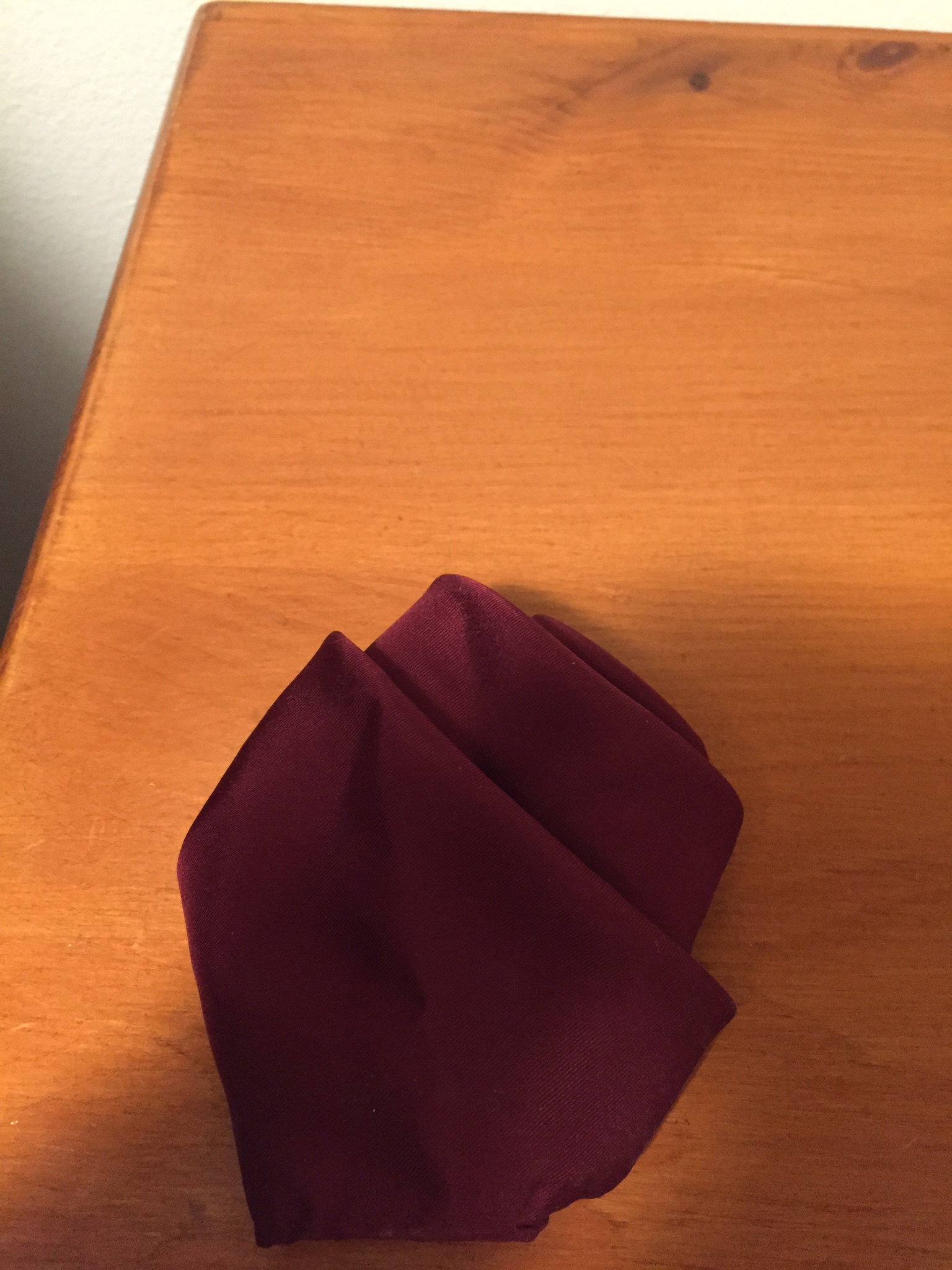 This is a formal, serious fold, suitable for important meetings, or formal events. It can have a tendency to need a little fluffing throughout the day, but I prefer the peaks in this fold to a standard three point fold. This fold also requires a larger pocket square, and I would recommend silk, or a very broken in cotton for the material.