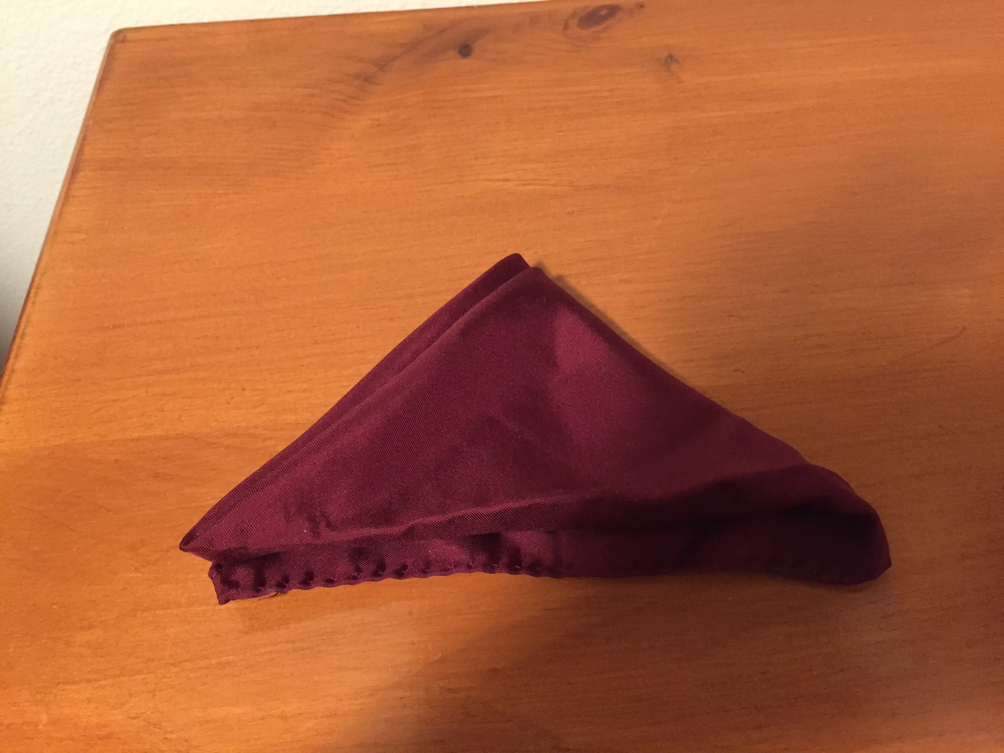 The first fold, which I will call the three peaks fold, is also one of the first that I learned. There are a number of different iterations and ways to get “three peaks” or points on a pocket square. This is just one of them.