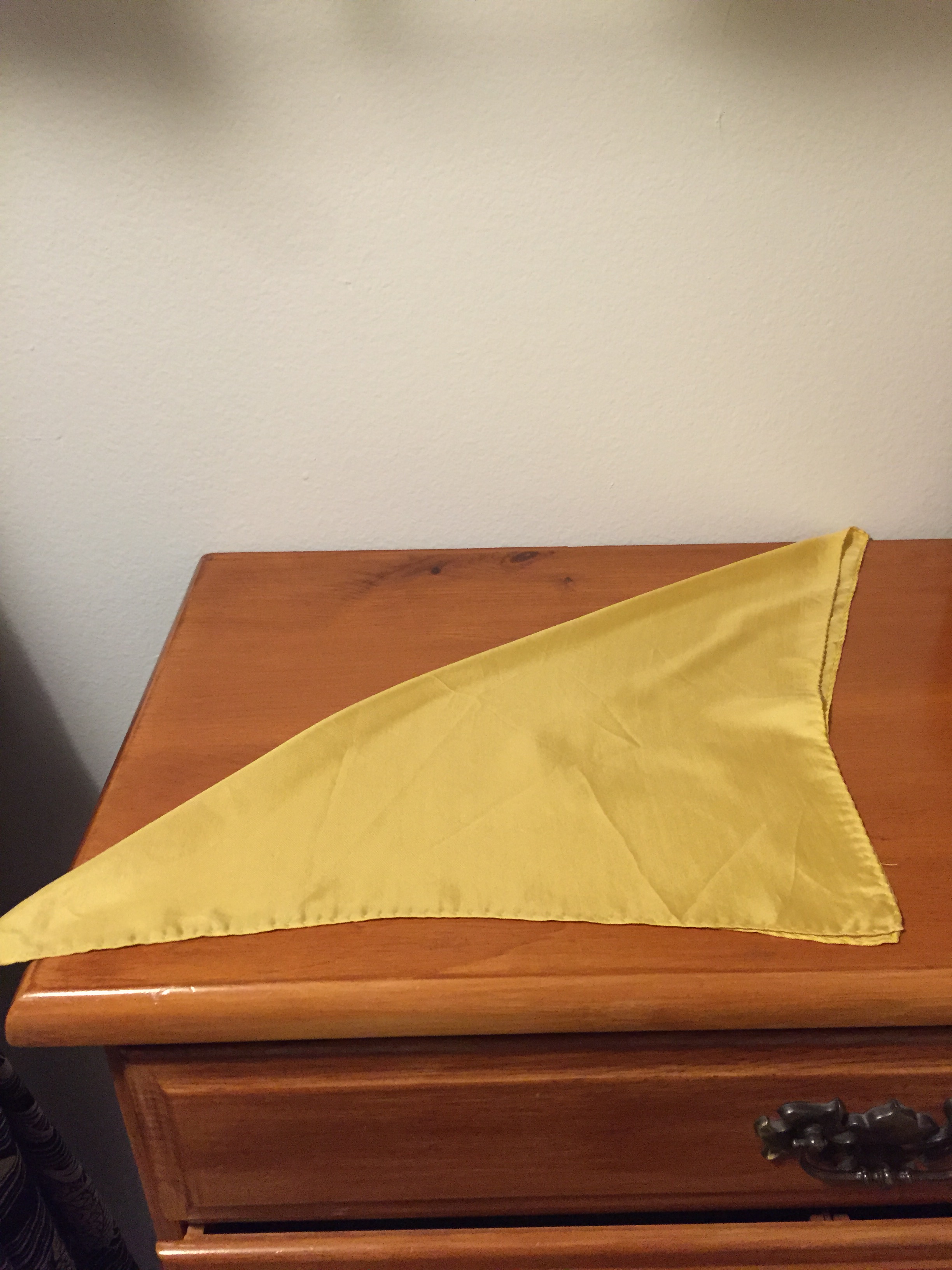 3. Take the corners and fold them to the bottom center corner of the pocket square.
