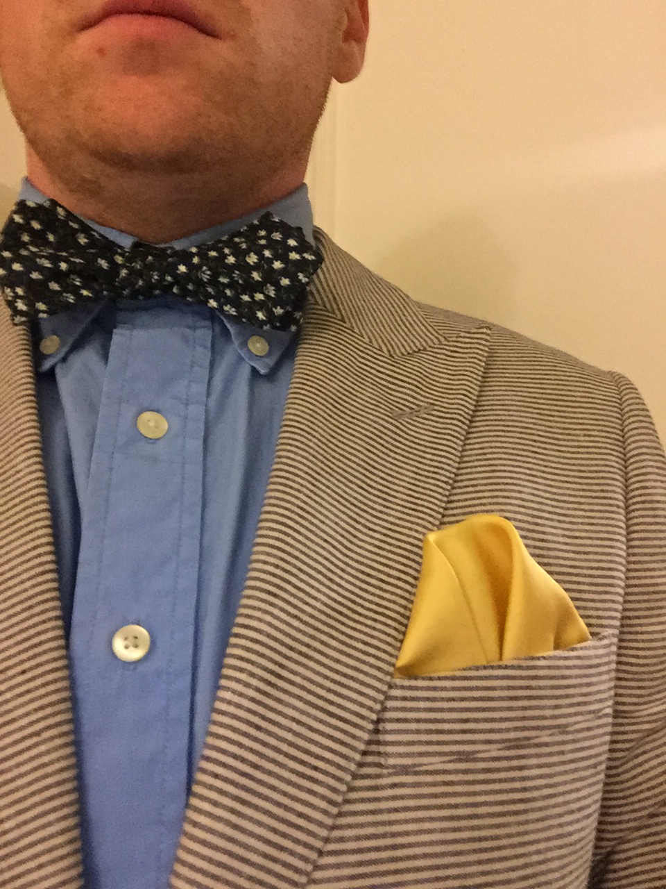 This is also one of my favorite (bow) tie pocket square combos. The floral pattern has a tiny tiny bit of yellow in it, but the fact that it’s a floral pattern just makes the yellow fit that much more. Happy folding everyone. Any questions, feel free to email me at seamus@smkstyle.com.