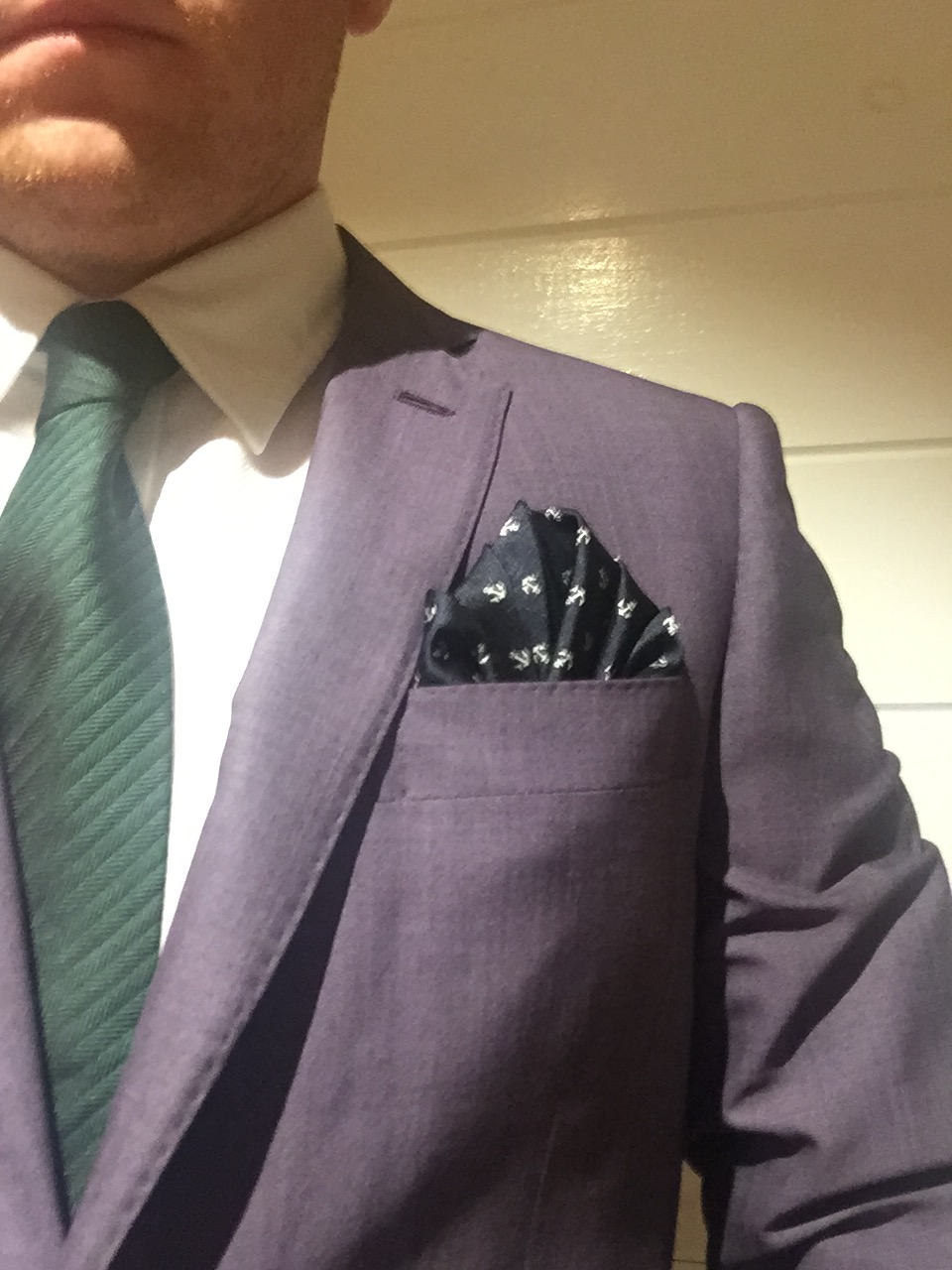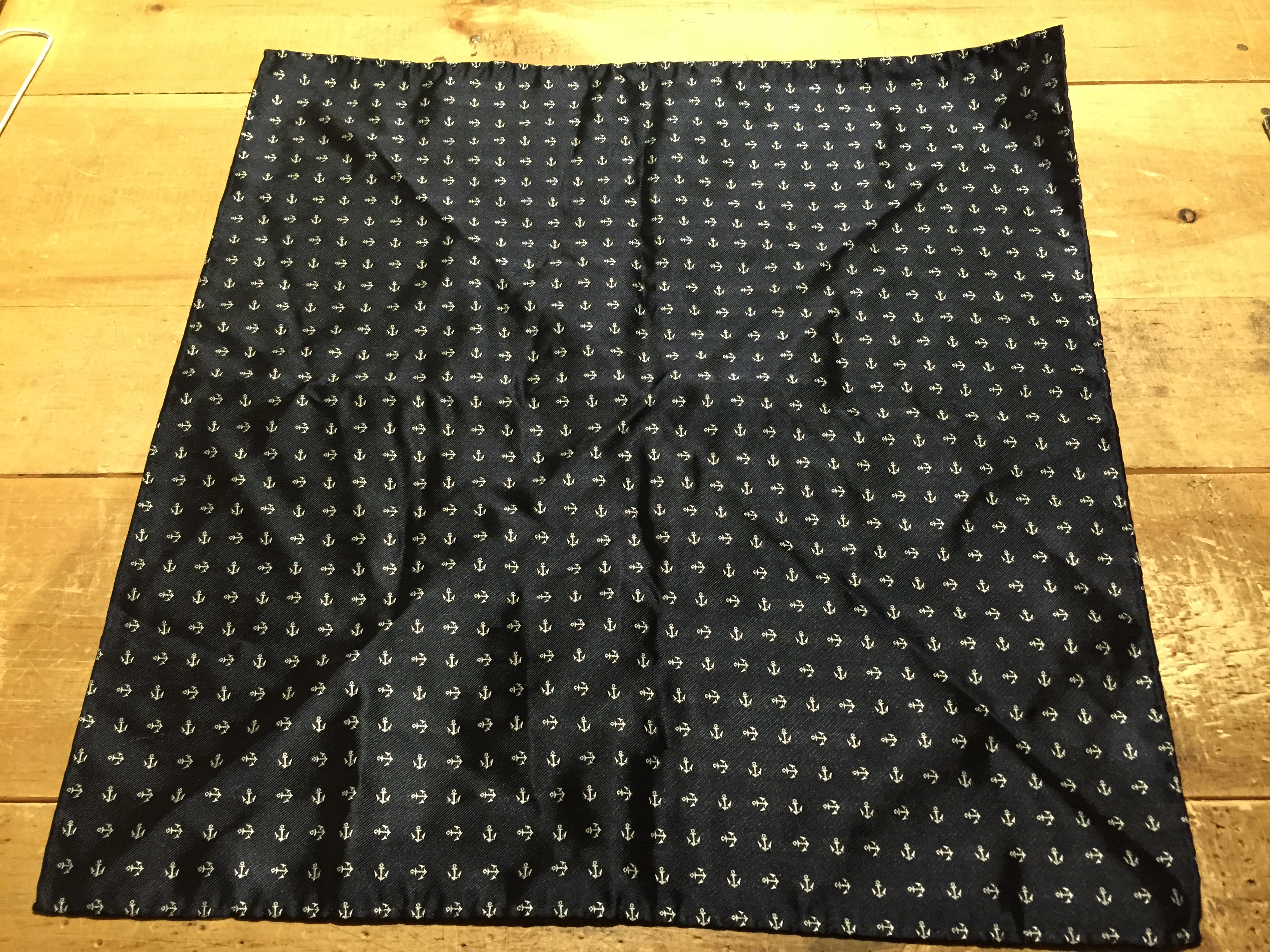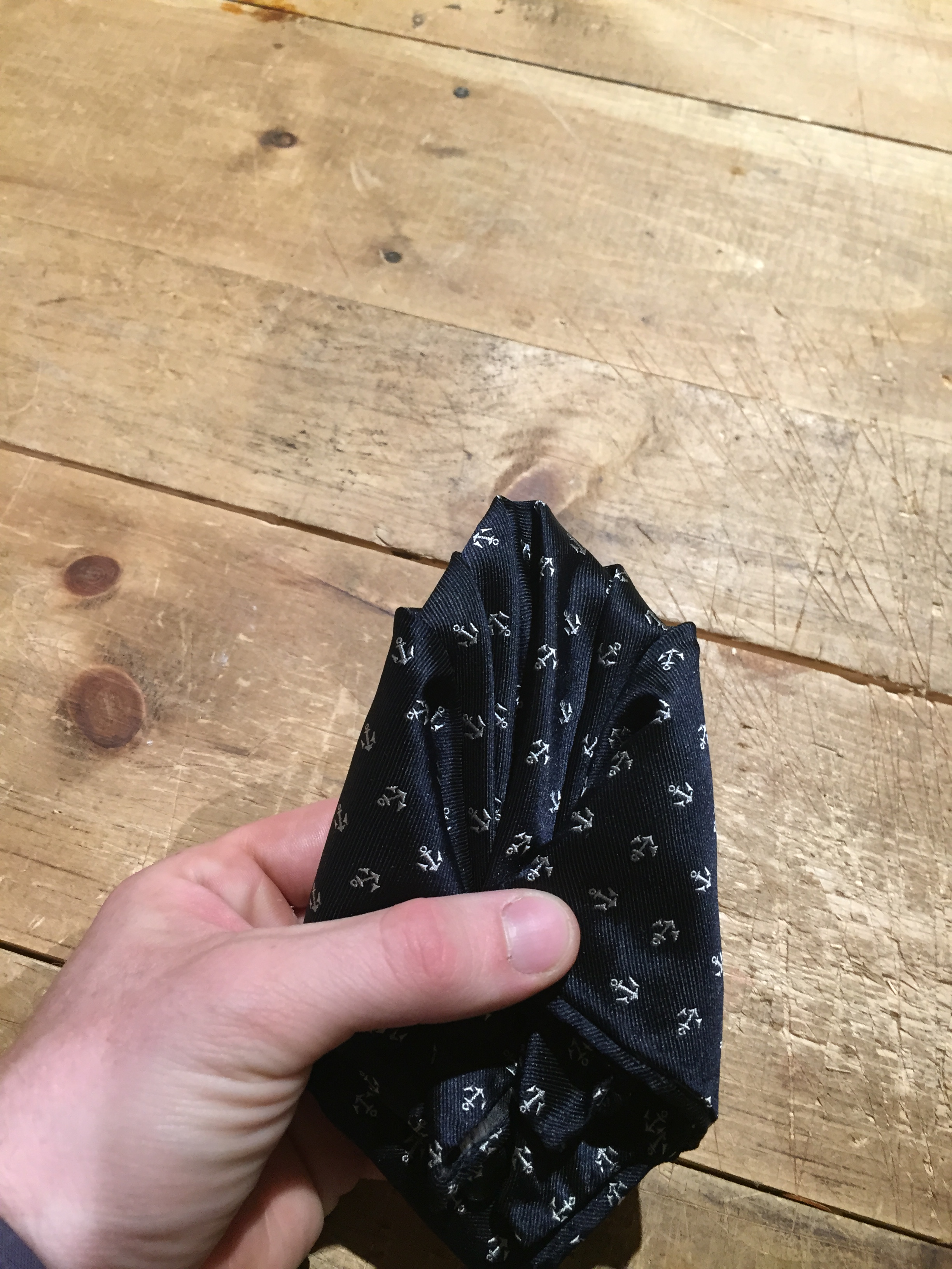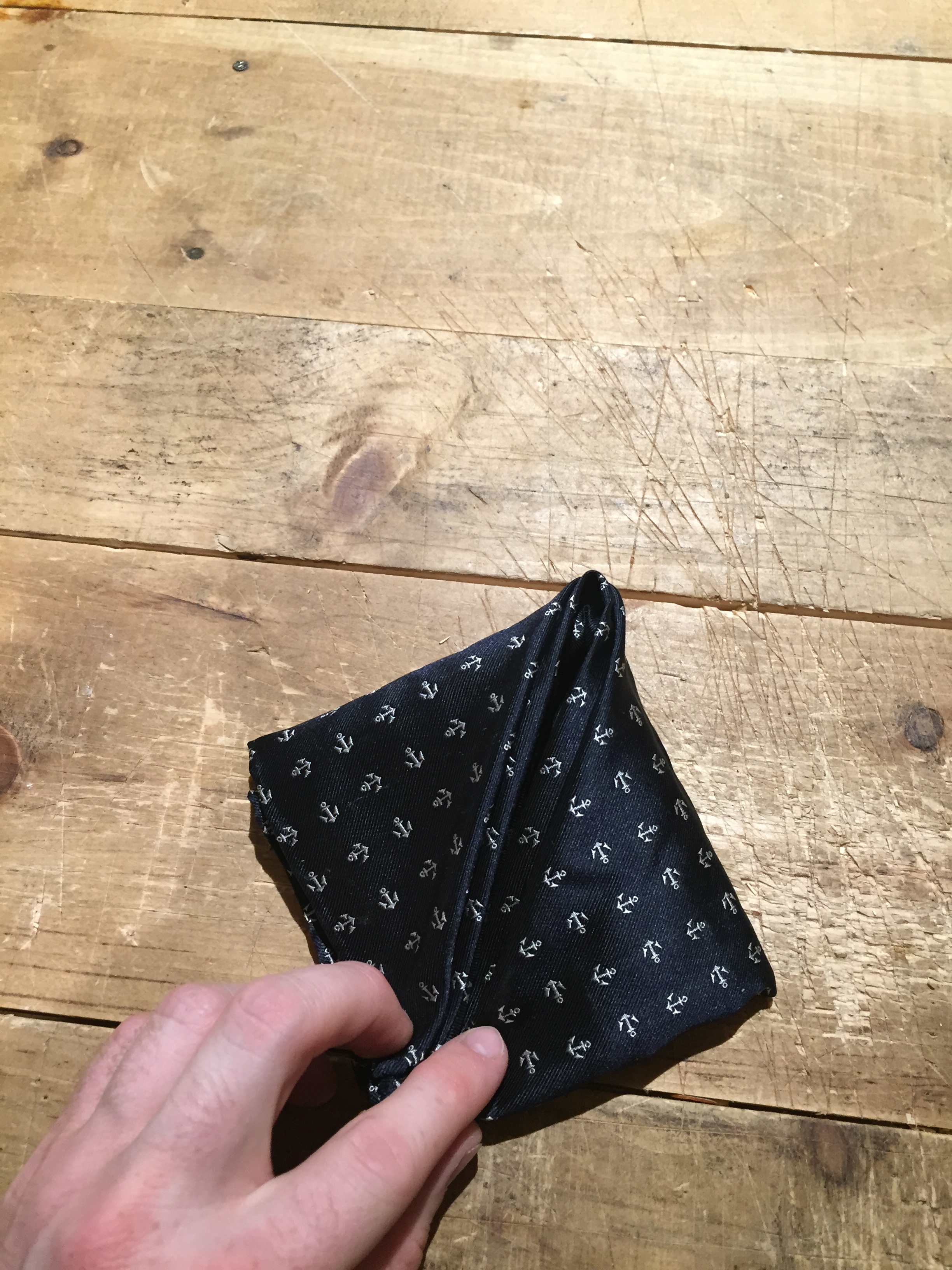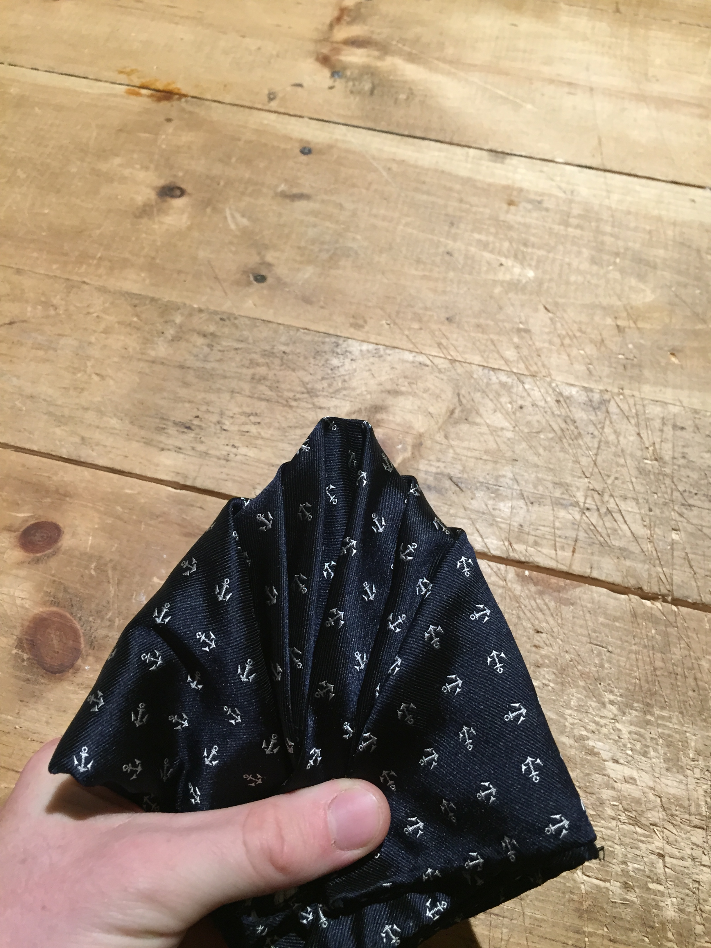 So, today I’m going to show you what I’m going to call the cascade fold. It’s sort of like a winged puff fold on sterioids. It’s a rather detailed fold, and requires a larger pocket square. I’d reccomend it for fancy parties, weddings, and other parties that call for jacket and tie.