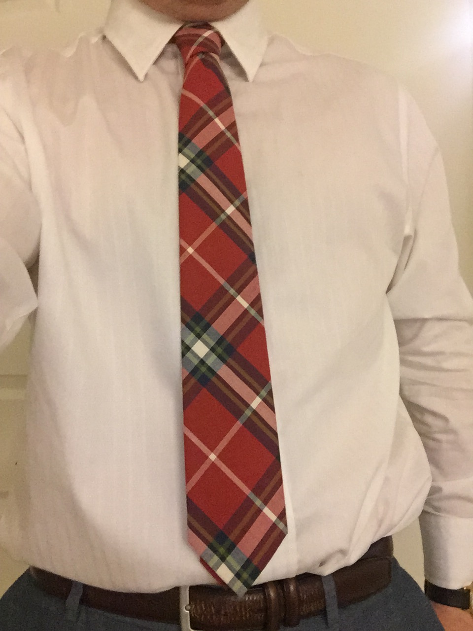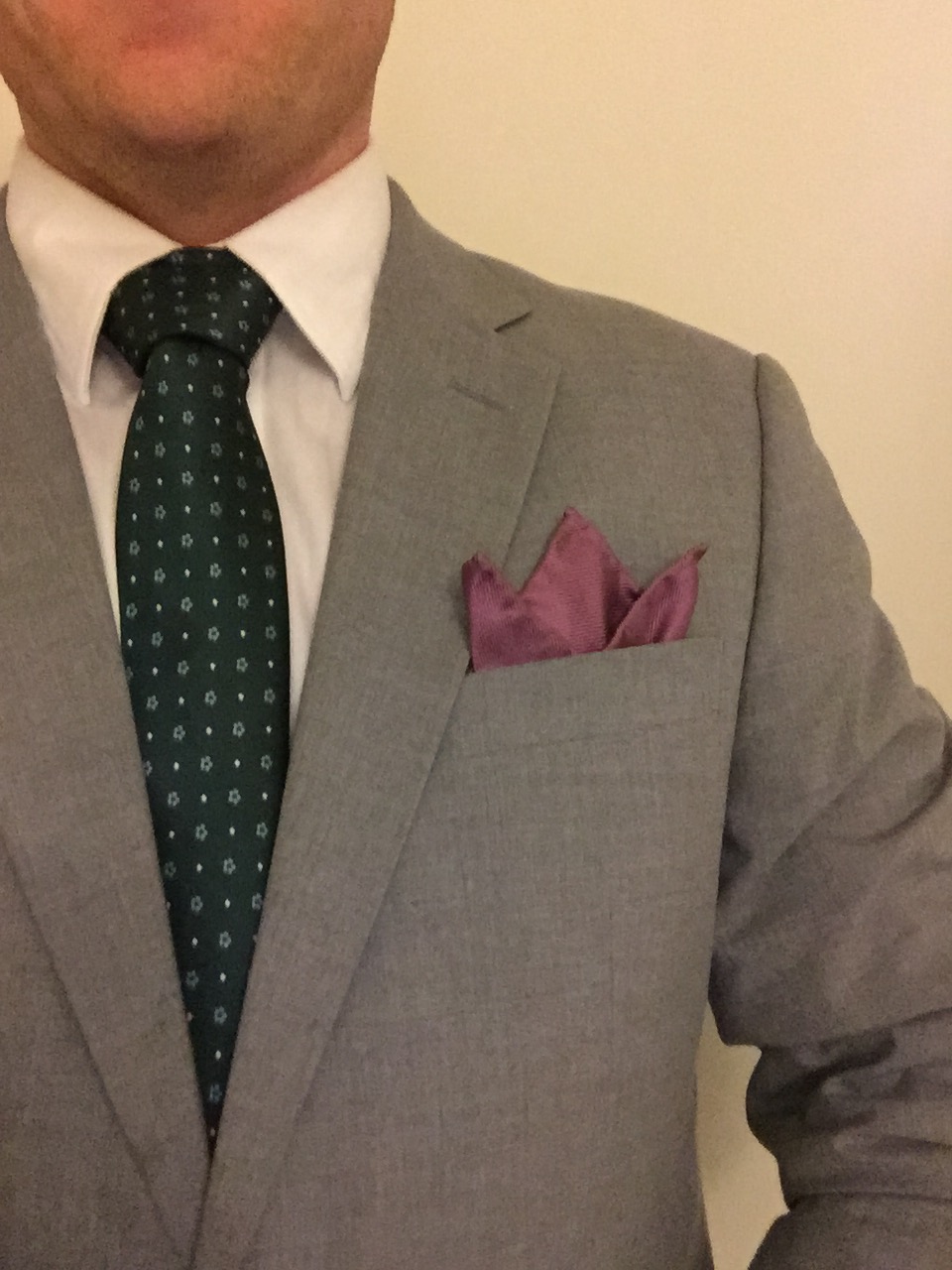 Some people have a hard time figuring out appropriate length before you tie. I have my methods, but really, it depends on the knot. Now, this is a blog series about pocket squares, not tie knots, so I’m not going to go to deep into it. What I do, is when making my knot, just before placing what will be the front through the knot, I measure to see if it meets the crease where my leg and groin meet. A little weird, sure. But it works for me and my body, and keeps me from having to undo my whole knot.