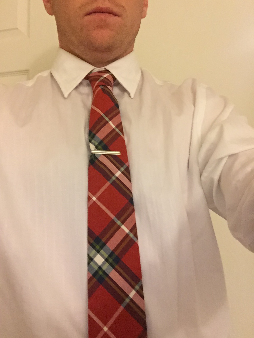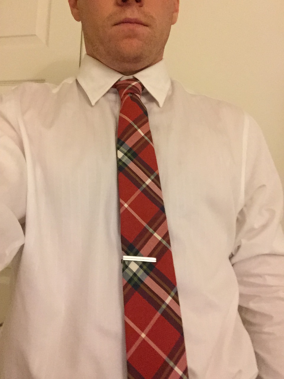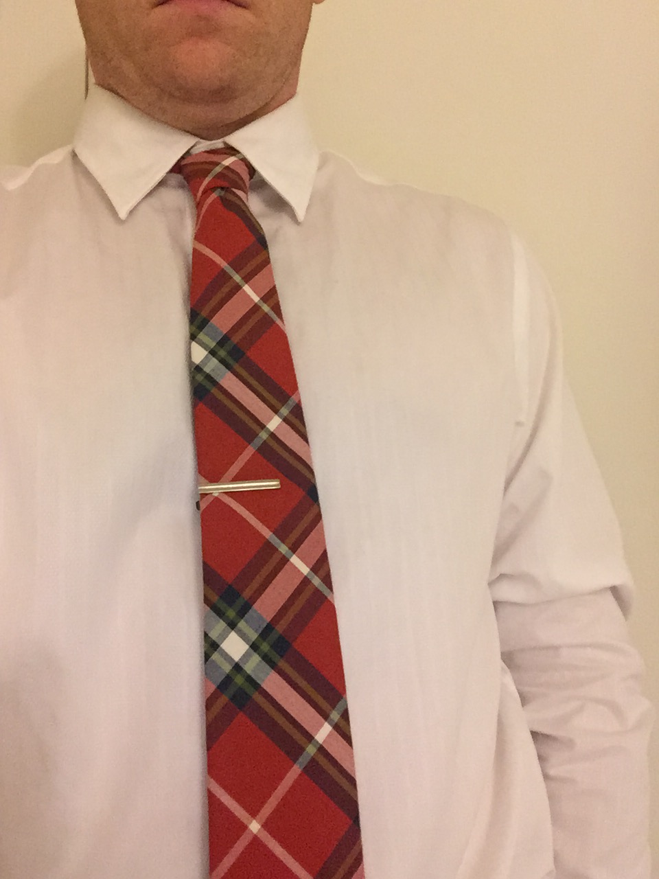 As for Tie Clips, they should go about an inch or two above your sternum. Somewhere between the third and fourth button from the top on your dress shirt. This is too high.