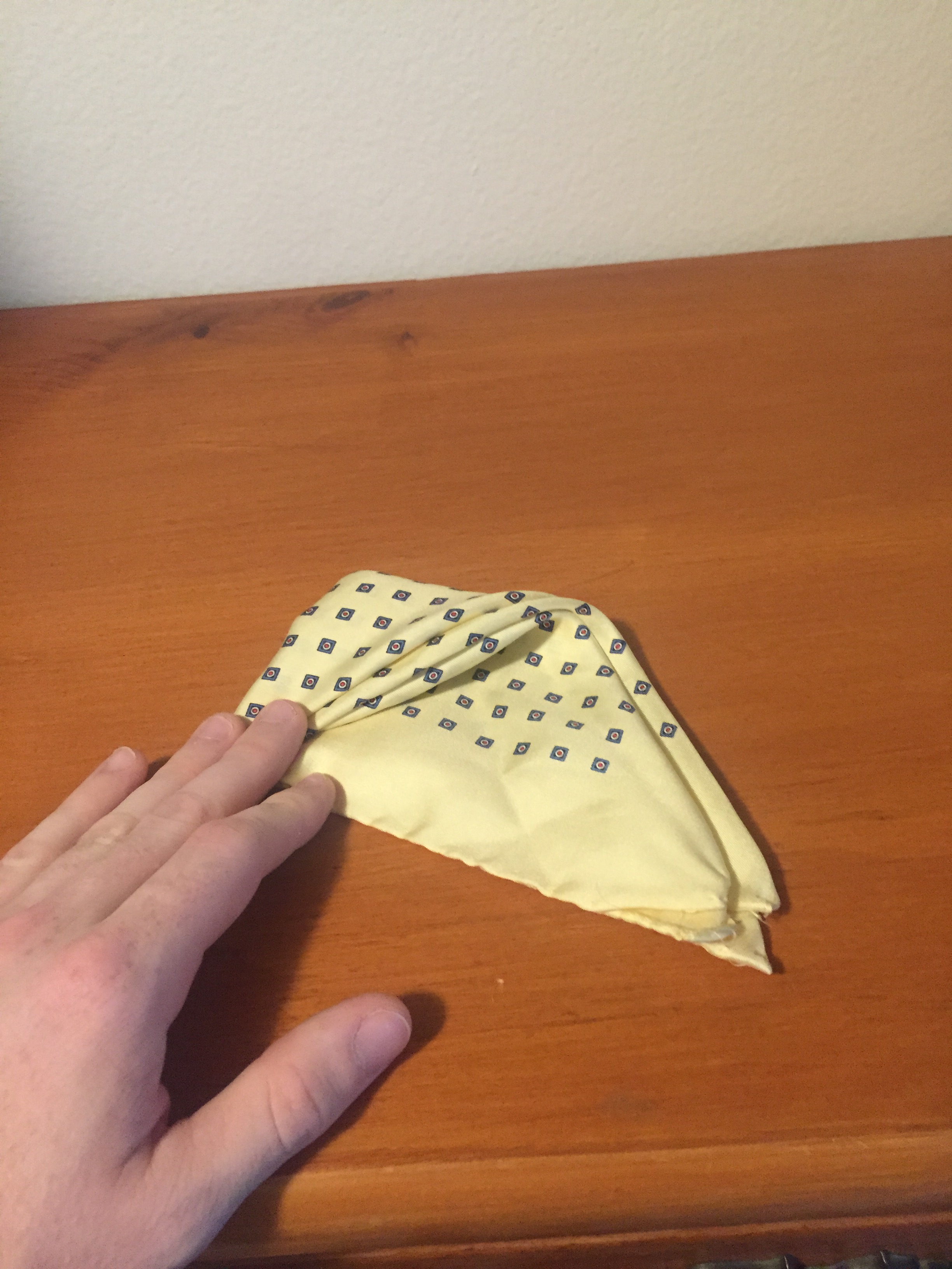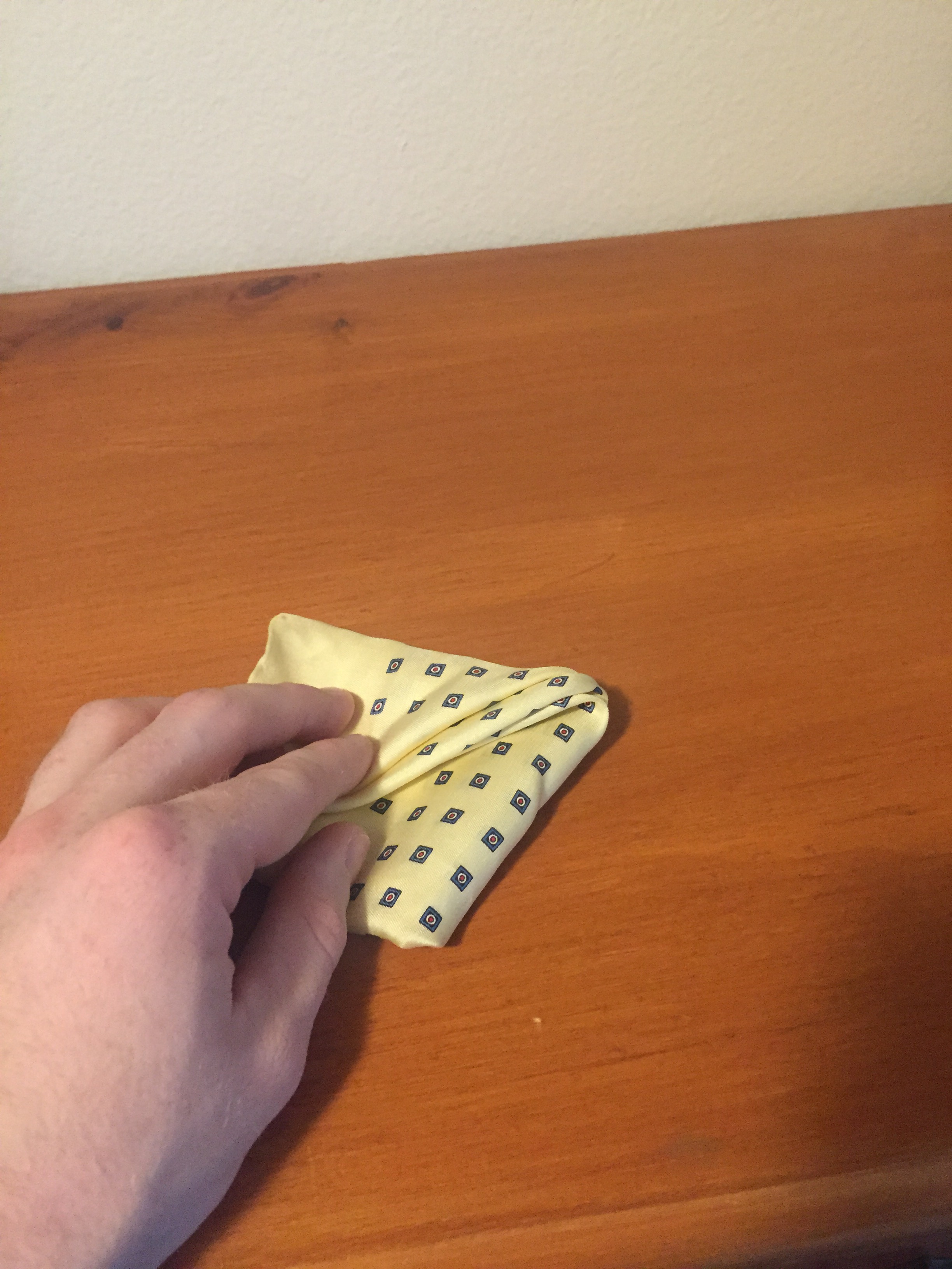 5. Fold the corner down towards the center so the three folds of fabric are making a tip.