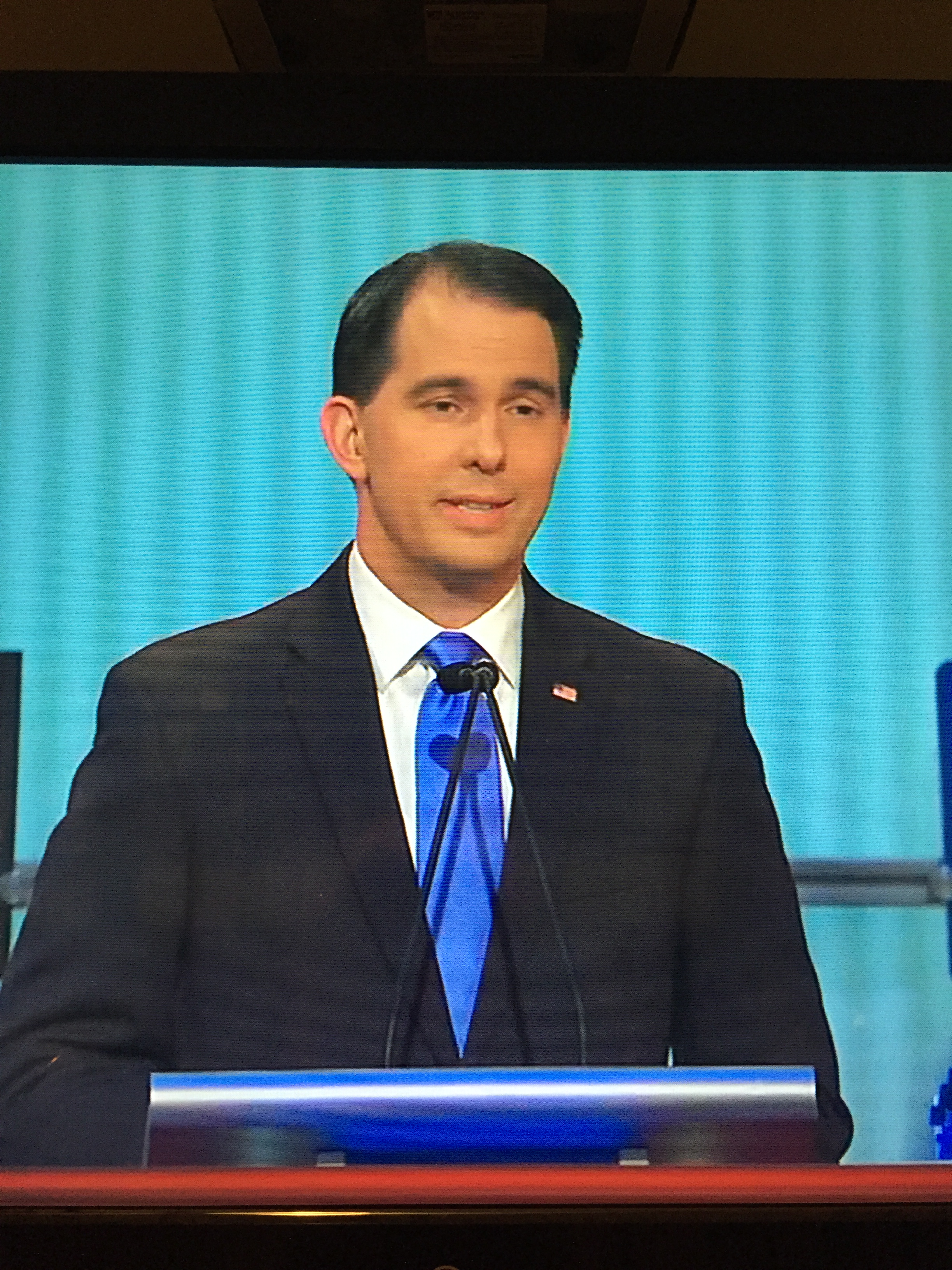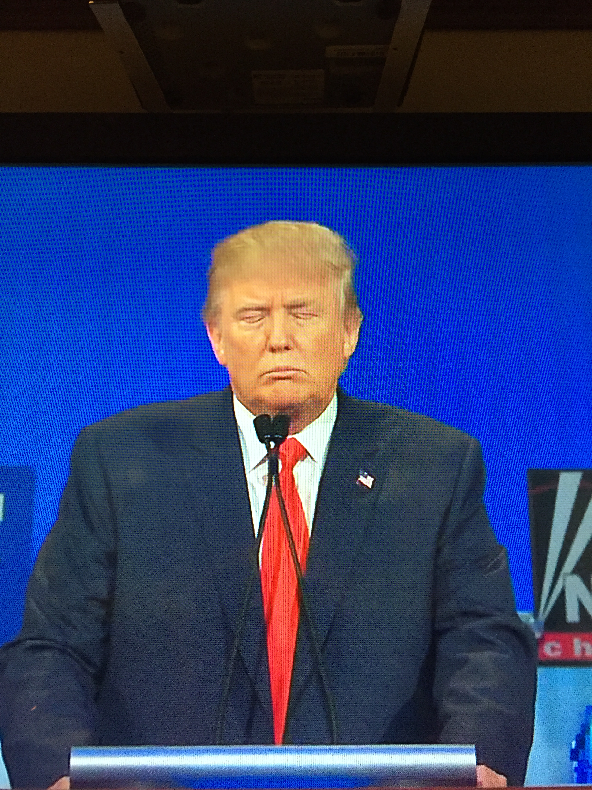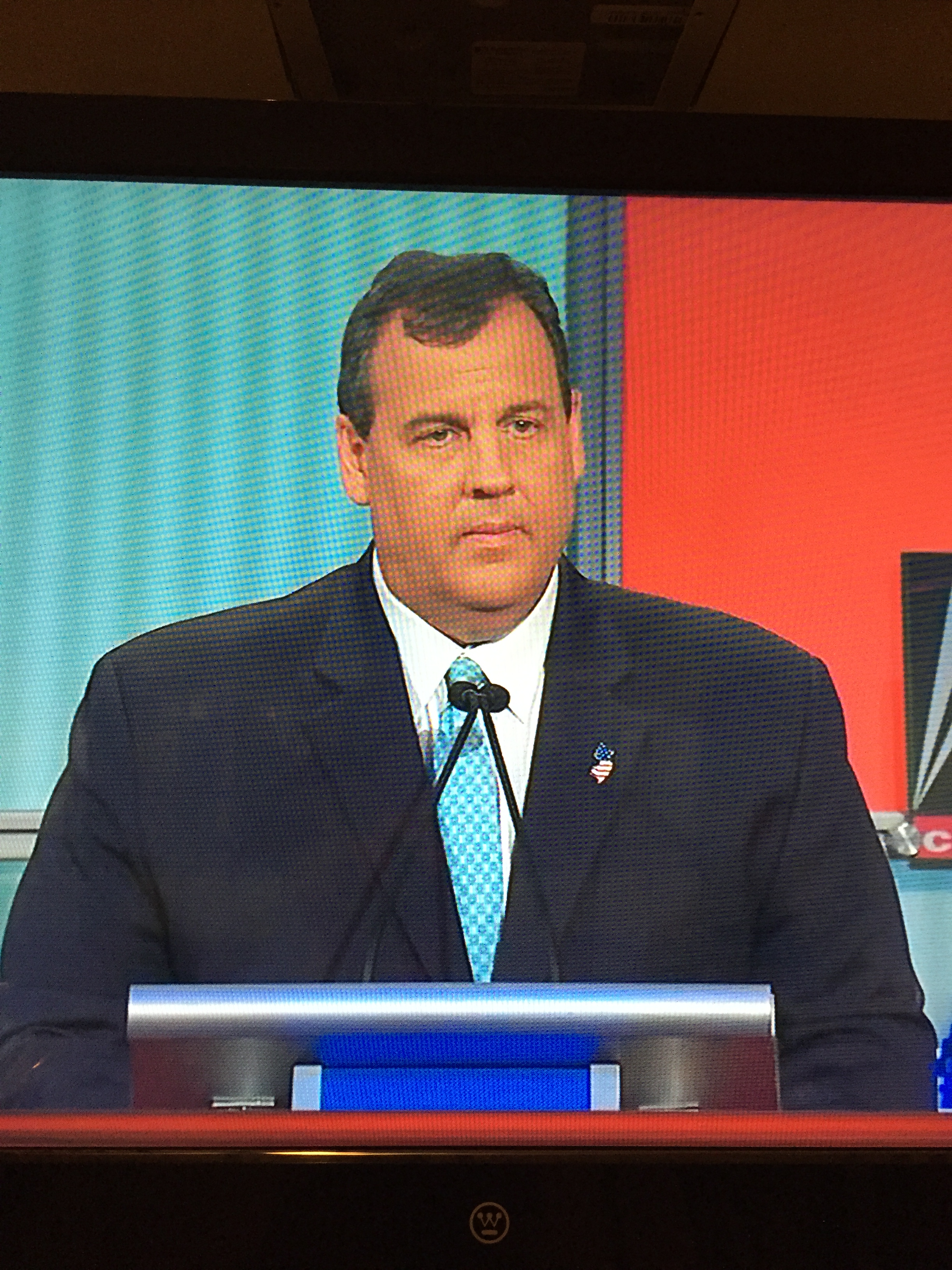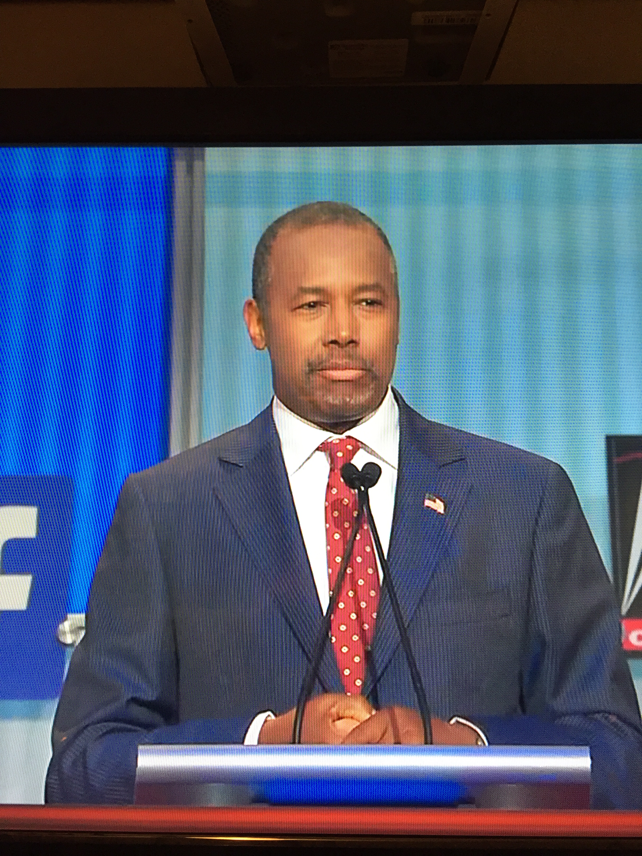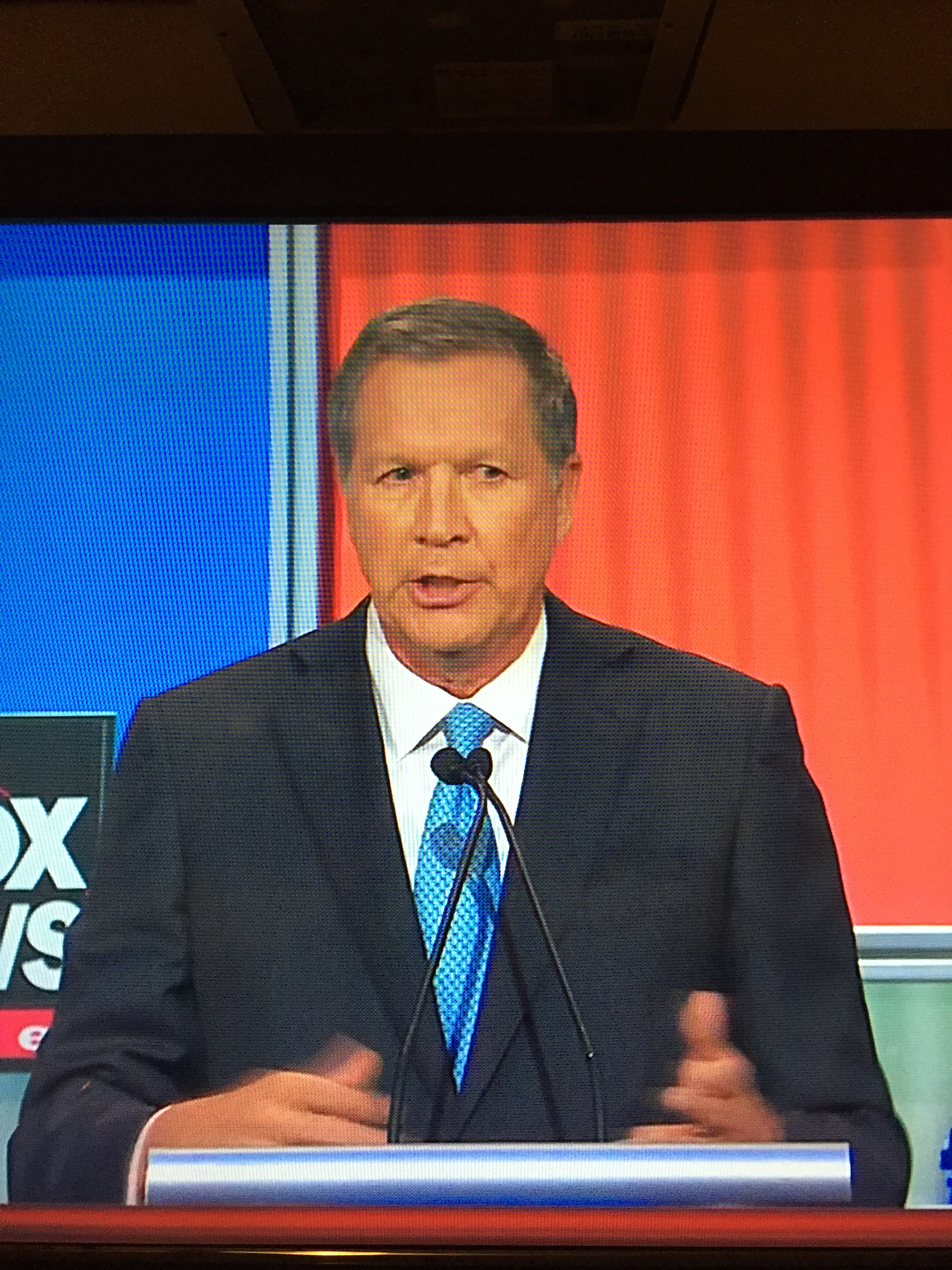 No flag pin for Gov. Kasich either. What happened to Republicans loving America, and showing it by wearing a flag pin? I did like his tie, but I always prefer the red look for presidents.