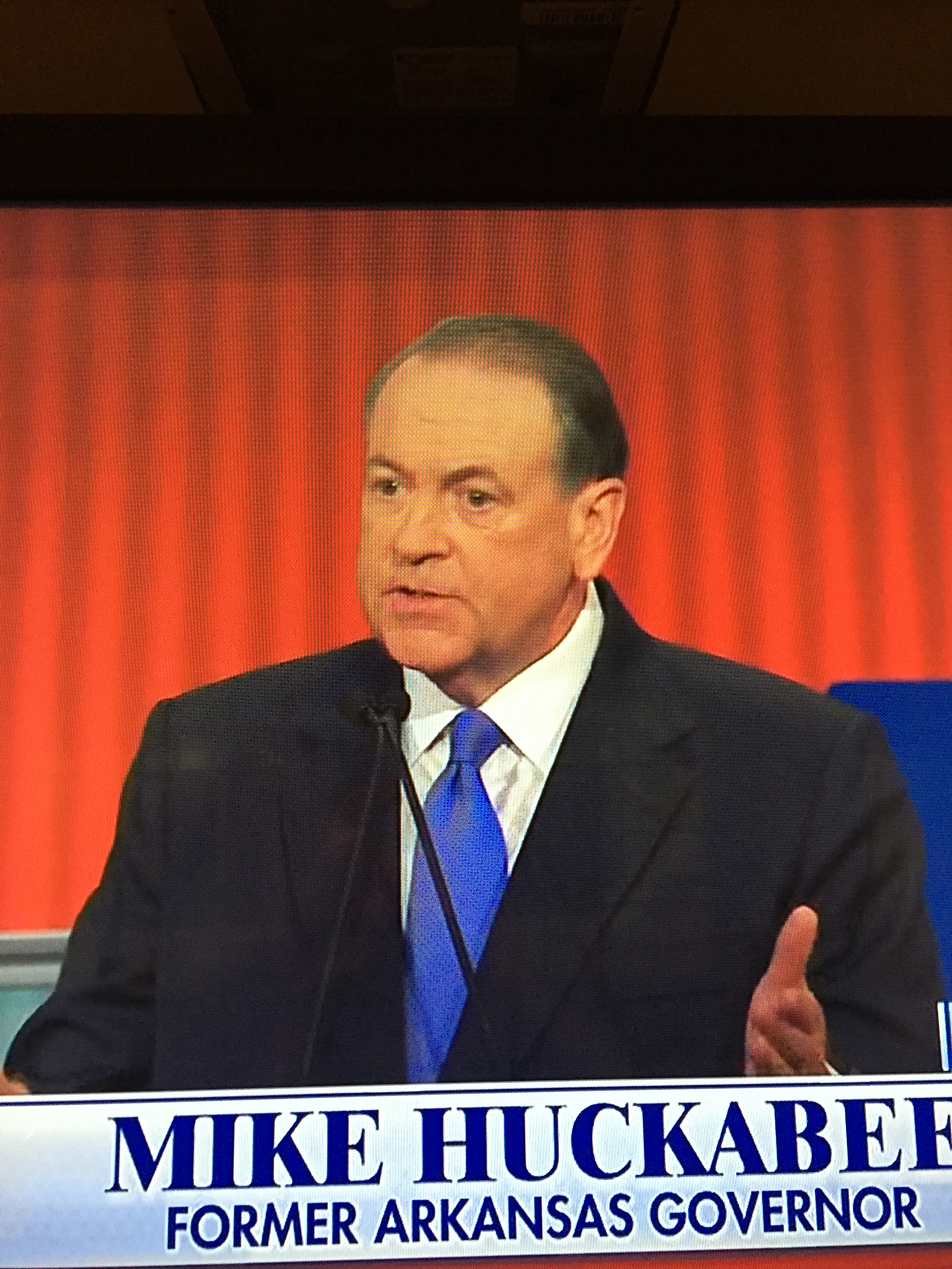 Mike Huckabee didn’t wear a flag pin. This means he hates america. He also wore a blue tie, so he’s weak. And he wore French cuffs, so he’ll surrender. His suit was too large for him, and it made him look kind of bloated. Like the federal government budget that apparently everyone wants to cut after imposing a flat/regressive/consumption tax.