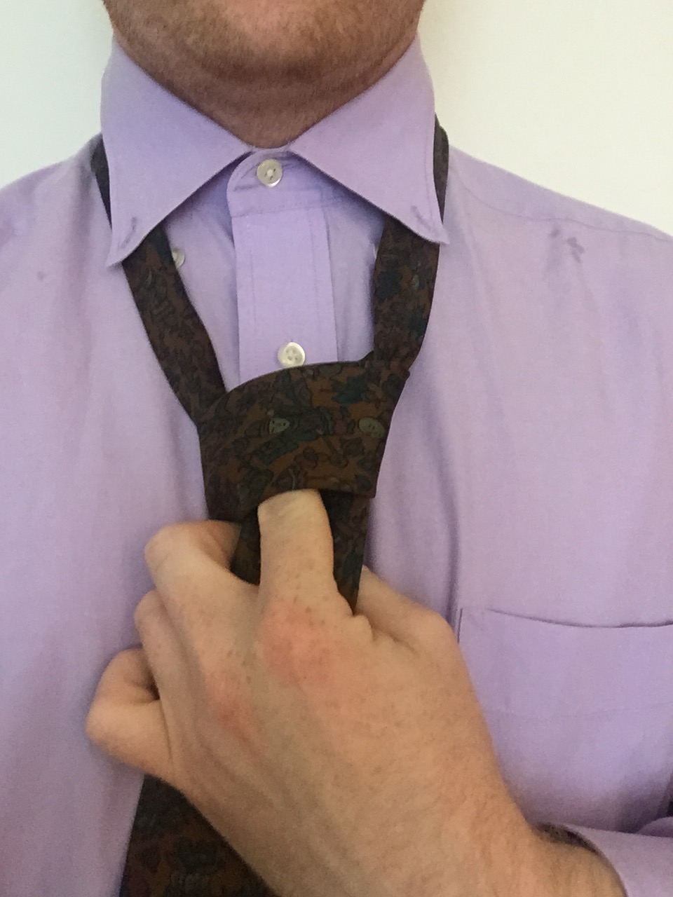 So, how do you do it? When you’re tying your tie knot, and it’s still loose, this is the time to strike.